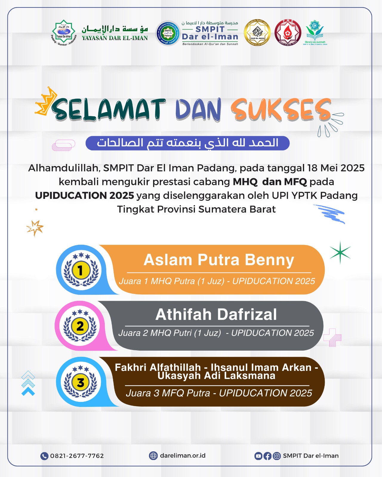 🏆Alhamdulillah kabar gembira datang dari anak kita yang mengikuti lomba MHQ Dan MFQ tingkat Sumatera Barat pada UPIDUCATION 2025.